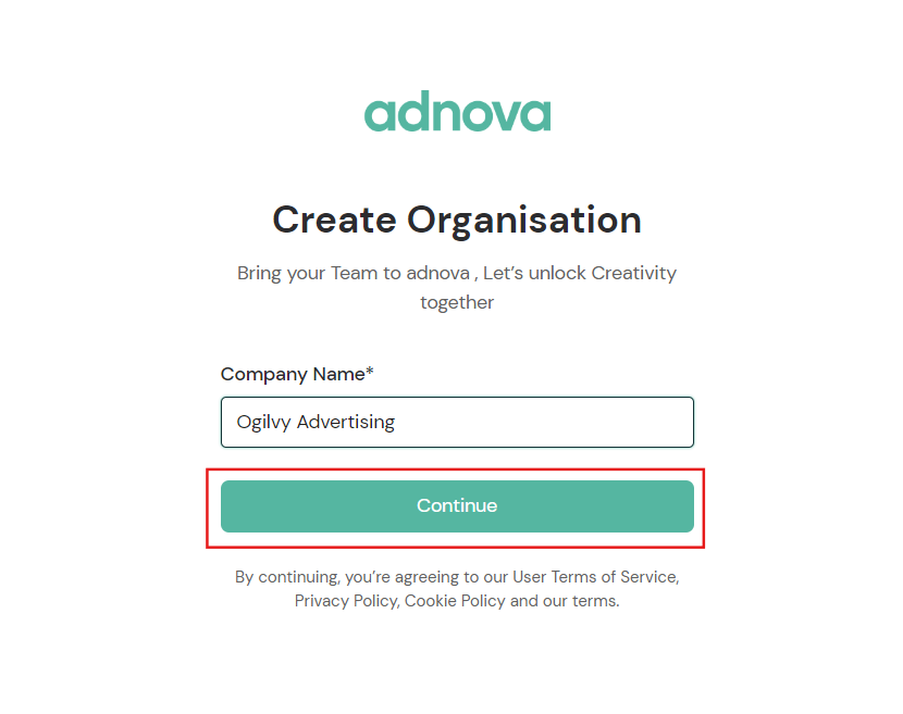 In adnova, "**Organisation**" serves as a centralized hub where all team members from your organisation can seamlessly collaborate